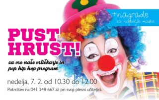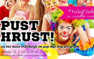 Letos bo to naše drugo pustovanje, lansko leto smo se imeli luštno :) PUST HRUST v Plesnem studiu Novo mesto bo v nedeljo 7.2.2016 ob 10.30 uri do 12 ure...za vse naše vrtičkarje (za vse NM enote, kjer poučujemo vaše malčke), pop hip hop program in pop jazz. Za animacijo bodo poskrbeli naši odlični animatorji...najlepše