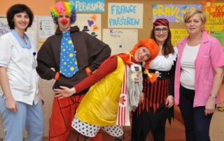 PARTI BUTIK , PLESNI STUDIO NOVO MESTO IN Elvis Zagrljača za FOTO ASJA  smo se danes na pustni torek odločili obiskati bolne otroke na pediatričnem oddelku splošne bolnišnice Novo mesto. Da otrokom letošnji  pust ne bo ostal v slabem spominu, so trije animatorji Pika Nogavička Nina , klovn Simon in piratka Lučka  popestrili njihov dan